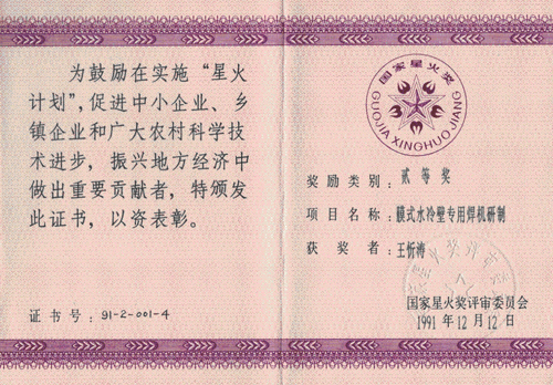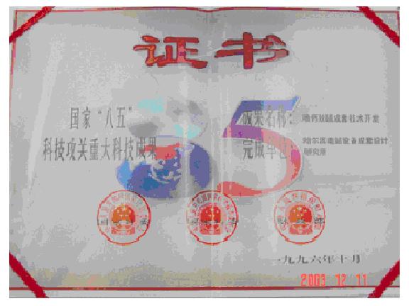 Prize for contribution of Science & Technology of Eighth Five-Year Plan