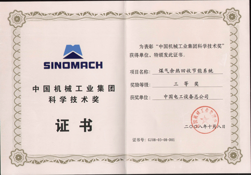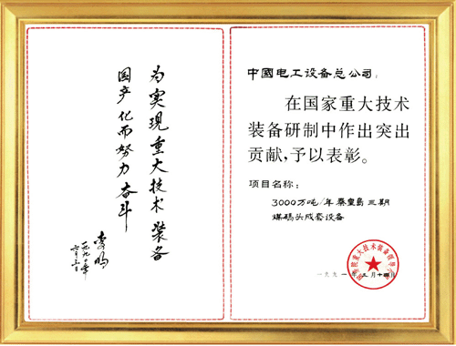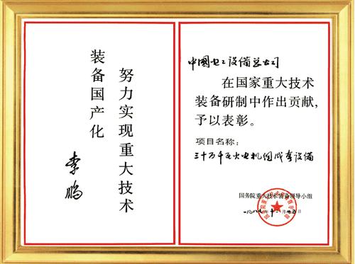 Honorable Certificate for Complete Supply of 300MW Thermopower Generator