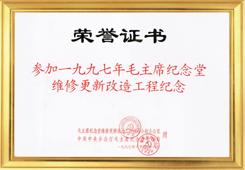 Certificate for Rehabilitation of Chairman Mao Memorial Hall