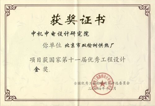 Golden Prize of Eleventh National Excellent Engineering Design Award