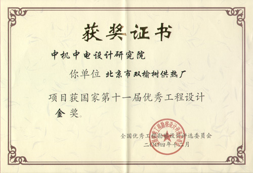Médaille d’or de la 11ième session de la Conception d’ouvrage Excellente