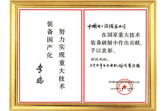 Certificat pour équipements complets des groupes thermiques de 300 000KW
