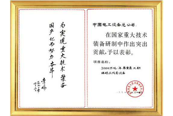 Certificat glorifié : Équipements complets de terminal charbonnier Qinhuangdao
