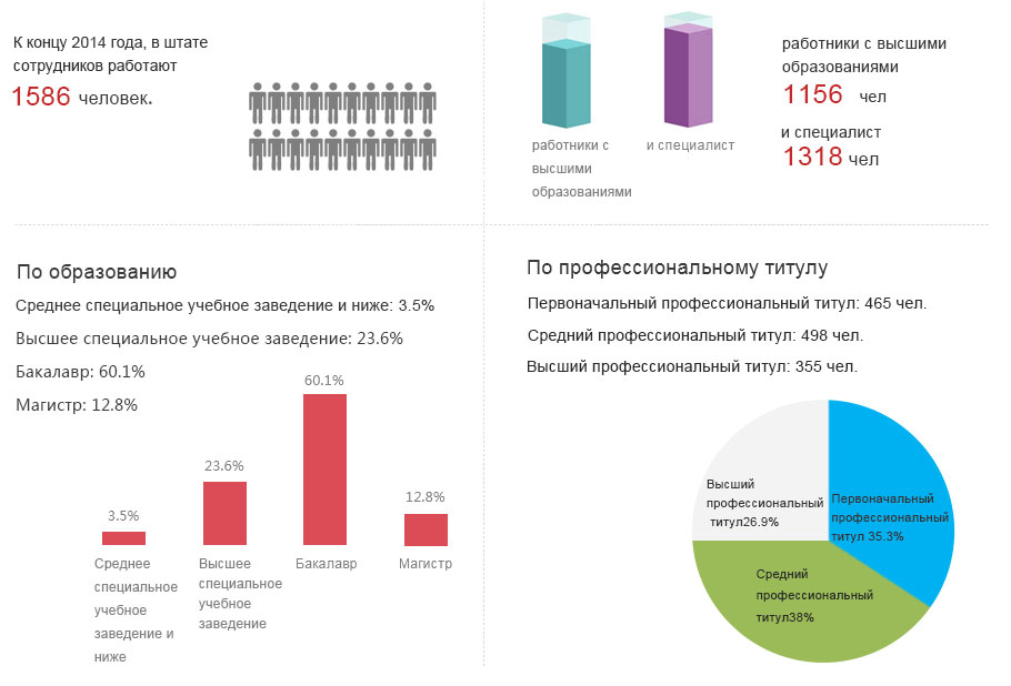 компания всегда придерживаются" , чтобы показать в дела , вклад в повышение стоимости в " концепции талант, подготовка большого числа специалистов , к концу 2014 года сотрудники компании в общей сложности 1586 человек , степень бакалавра или выше есть 1156 человек, специалистов 1318 человек , соответственно, 72,9% и 83,1% от общего числа . Это включает в себя большое количество технических экспертов , правительство надбавки, премии , профессор уровень промышленности, стран первого и второго класса зарегистрированных профессиональных строителей, инженеров и дизайнеров и других старших техников. образование, распределение Конкретные названия см. ниже.