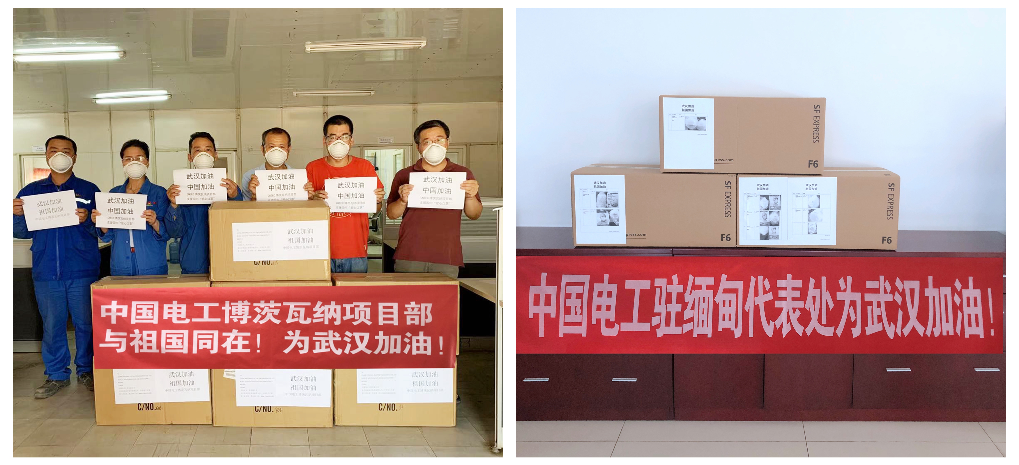 博茨瓦納MORUPULE B 4×150MW燃煤電站項(xiàng)目部及緬甸代表處在物資緊張的當(dāng)?shù)嘏Σ少彽揭慌酪呶镔Y,捐贈至湖北抗疫一線。