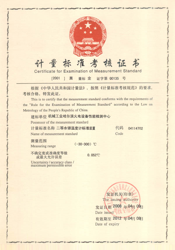 Certificado para Examinación de Estándar de Medición