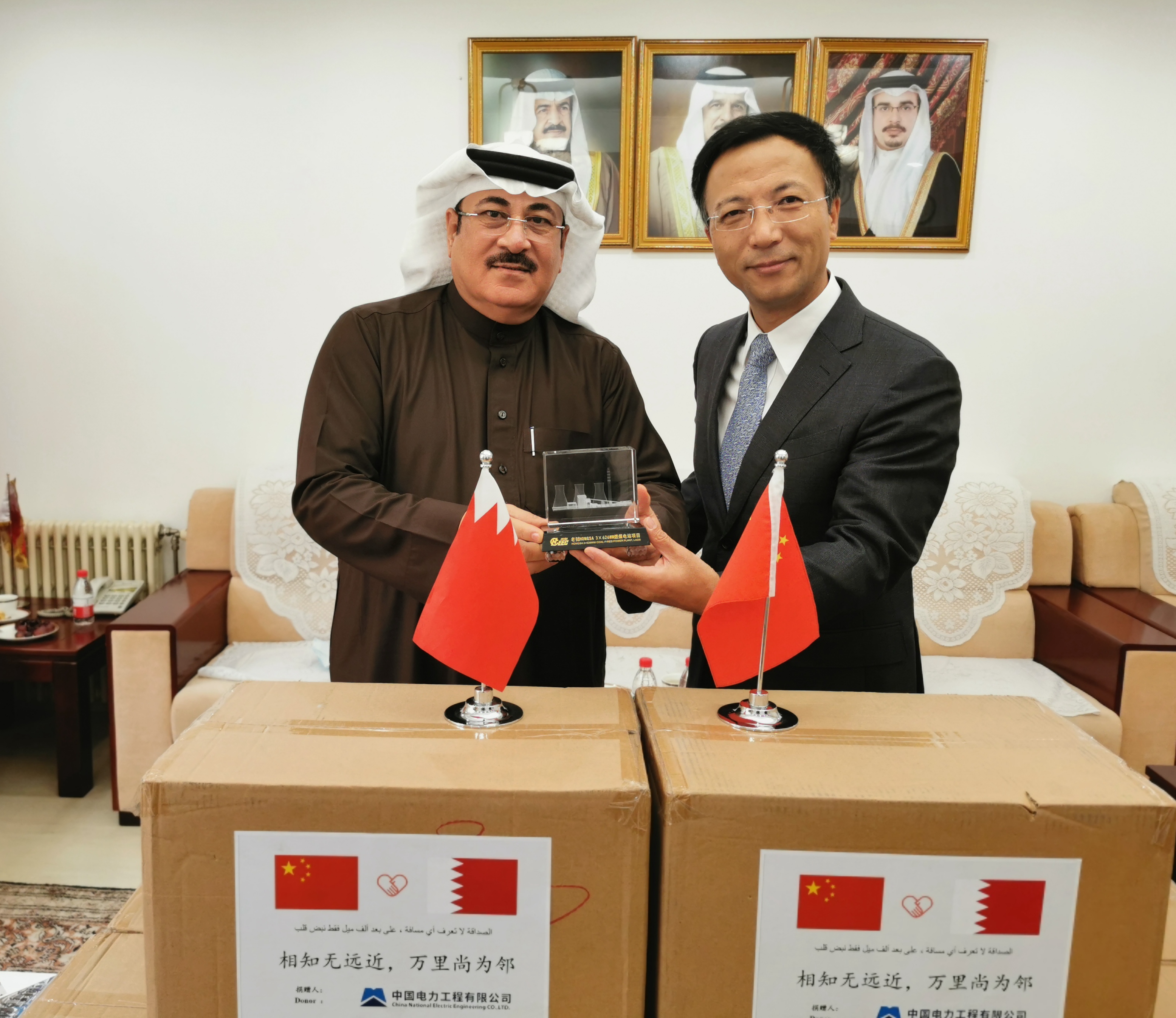 Durante el brote de la pandemia en el exterior, CNEEC ha donado 20.000 mascarillas N95 a la Embajada del Reino de Bahrein en China para apoyar a Bahrein a combatir la pandemia.