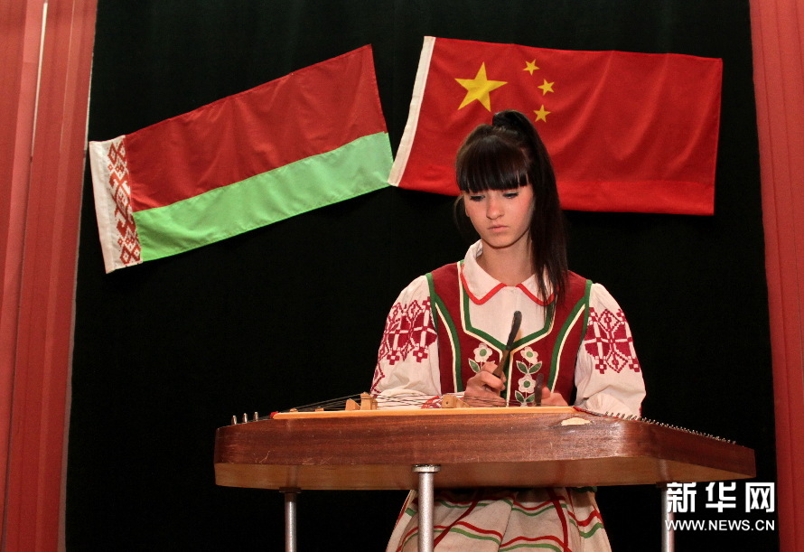 學漢語的學生演奏揚琴。新華社記者陳俊鋒攝。