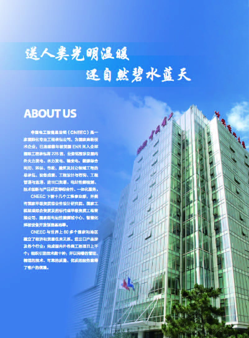 中國電力工程有限公司(簡(jiǎn)稱“中國電工”)是一家國有大型國際化專業(yè)工程公司,已連續(xù)數(shù)年被美國ENR列入全球國際工程承包商225強(qiáng)。