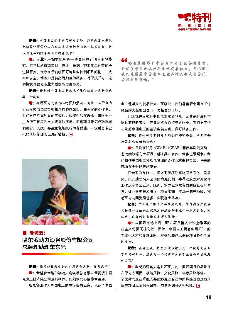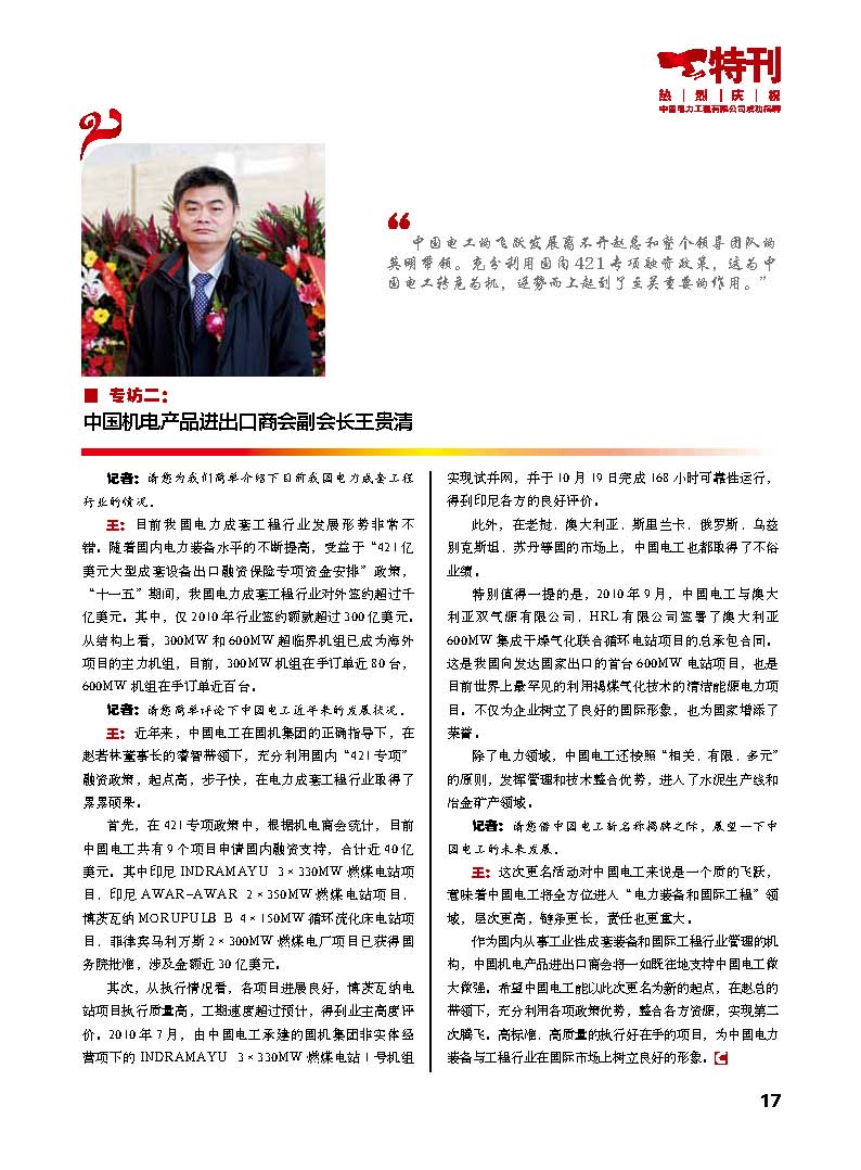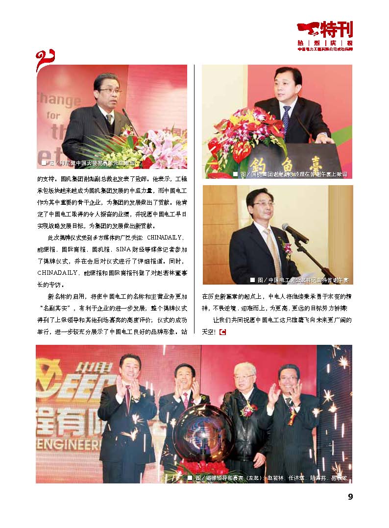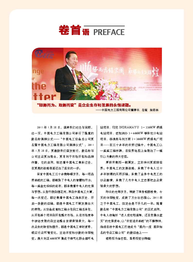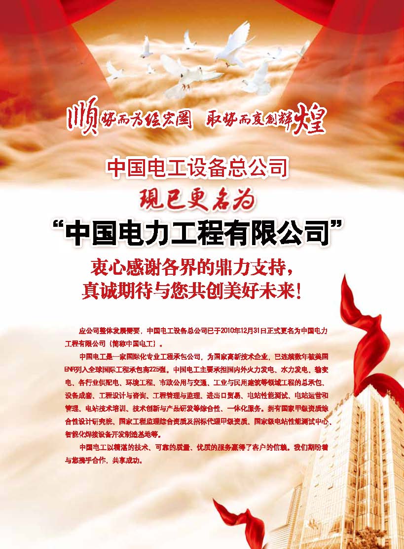 中國電力工程有限公司(簡稱“中國電工”)是一家國有大型國際化專業(yè)工程公司,已連續(xù)數(shù)年被美國ENR列入全球國際工程承包商225強。
